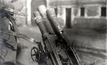 I remember the first day we tried the Stokes out in its new capacity, how excited we all were at the possibility of bringing down an enemy 'plane. We set up three guns at intervals of about 150 yards along the front: one gun with fuses cut to burst at three seconds, another at four seconds, and another at five seconds; and patiently awaited developments. It was not long before our patience was rewarded, and a big enemy plane crossed our line at a height of about 500 feet. The nearest gun opened on him with two fine bursts just above him, while simultaneously the second gun put two equally good bursts underneath. The Infantry were very interested and excited at the thought of the possibility of bringing down a 'plane, and the machine seemed to falter and fall and then right itself and made off back to the enemy lines. Other enemy planes came over that day to investigate this new method of ours in anti-aircraft defence, but were very wary, and kept at a height where our mortars could not reach them.