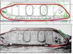 agreed. starting over, I began with the dimensions from the old drawing, figuring someone went to some trouble to get measurements down to the eight of an inch, do there is a good chance that they are accurate (unless someone wants to go measure the real thin for me. I used the radii of the front idler and rear drive wheel from the old dwg. Then I "connected the dots. For the lower front track run I ran a spline between the contact length as you suggested (8th to 18 wheels) to the front idler. The heavy red line in the upper profile is the result.