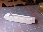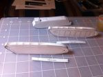 Side-frame assembly pix. 0653 shows the stiffeners (ribs) attached to one side. 0654 shows the two sides with ribs between. I considered spacing the ribs so as to miss the doors, in case someone wanted to open the doors to show the inside. This might be possible, but it would complicate the rib layout. Anyone competent to model the interior could certainly re-arrange the ribs to suit. Comments, anyone?