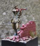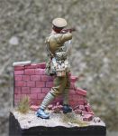 Here's my rendition of Tommy's War's 54mm Pvt of the 1st Lincolns at Mons. The groundwork and wall are scratch from sculpey. Note the spent cartridges on the ground (sliced plastic dowell). Painted in artists' oils. The wall wasn't finsihed in the photos as the mortar has not been painted light grey.