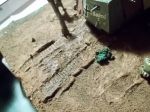 The troops are spare Revells that only took me two days to paint. the entire diorama took 2-3 days and is actually made from tape, newspaper and foam core. I used some cheap filliment, and had my wife make the tracks in the mud behind the tank. the house is made from plasticard wood pieces and cardboard.