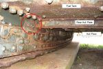 Here is my problem - on the plans there are eight 5 1/2 inch holes along the lower edge of the inner hull, between the cabin floor and the rail to which the 'U' bolts holding the roller axles attach (I have circled them in red). Note that these holes are in the inner face (ie you would have to be underneath the tank looking out to the side to see them.