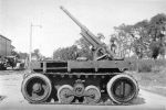"Prior to the early months of 1918, our own efforts along this line consisted in the building of one caterpillar mount, self-propelled by a gasoline engine and carrying an antiaircraft gun. Around this nucleus an ambitious caterpillar program was built. An 8-inch howitzer was placed on this antiaircraft caterpillar mount and fired at angles of elevation varying up to 45°. Maneuvered over difficult ground, the machine withstood the firing strains and road tests in a highly satisfactory manner. As a result of the success of these tests, orders were placed for three more experimental caterpillars to mount 8-inch howitzers. Tests of two of these completed units were so gratifying that it was felt they warranted quantity production. Accordingly, orders were placed for 50 units of the 8-inch howitzer caterpillars to cost about $30,000 apiece, for 50 caterpillar units mounting 155-millimeter guns, and for 250 units mounting 240-millimeter howitzers.