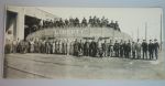 My guess is a dressed up tram car. It would explain why the sponsons are painted on... so they could pass other traffic. I've seen photos of trams and trolley busses dressed up for special occasions lots of times in local history books here in Portsmouth. Could be a pantograph arm top left behind the people on the roof.