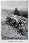 The writer made the first climb on one of the Renaults, in company with eight other passengers, among them being Gen. Swabey, delegated by the British War Office.We were seated on a couple of seats placed fore and aft immediately above the revolving bands.The driver was at the rear, and a few local hangers-on clustered around the seat.Right at the outset we tackled a 30% gradient, which was climbed without any difficulty.A little later the mule track began to zigzag in order to avoid a particularly steep bit, but the Renault driver preferred to tackle the steeper grassy slope rather than the easier, but rougher surfaced, winding track.