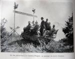 The writer made the first climb on one of the Renaults, in company with eight other passengers, among them being Gen. Swabey, delegated by the British War Office.We were seated on a couple of seats placed fore and aft immediately above the revolving bands.The driver was at the rear, and a few local hangers-on clustered around the seat.Right at the outset we tackled a 30% gradient, which was climbed without any difficulty.A little later the mule track began to zigzag in order to avoid a particularly steep bit, but the Renault driver preferred to tackle the steeper grassy slope rather than the easier, but rougher surfaced, winding track.