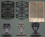 The second photo shows the 'grenade cover' on the left is my interpretation (note the method of mounting) and on the right the skeleton from Masterbox (the diagonals are removed before fitting the etch). I have to say I was very happy to see that my interpretation and that of Masterbox are very similar in size - neither owe anything to the dreadful thing on the Mk1 at Bovvy which is wrong in so many ways. The sharp eyed amongst you will note I have failed to fit the vertical braces at front and rear - I've only realised this now and will sort. The method of mounting the Masterbox version seems, simply, to rest the cover directly on the cab and a small extension on the rear. From the photos I have studied my method appears correct. Below these are: My Airfix steering tail, Mr X and finally Masterbox.