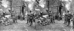 The end door(s?) seems odd - somewhat like a U.K. cattle wagon, but the lower flap leaves a tall sill even when down - as if they wanted to keep something inside the wagon.Even given the normal profiles of 60 cm box wagons, this one seems taller and narrower than most.I wondered if it could possibly be a horse van - for very important horses?However, in this instance it is being used to carry gear, which is being stacked on the ground as it is off-loaded.