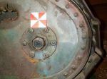 The six bolts on the front slope below the cab, hold the steering wheel. From the wheel runs two cables that go back throughout the tank, exiting through tubes in the rear bulkhead.