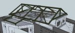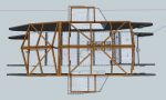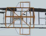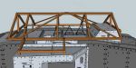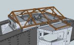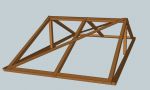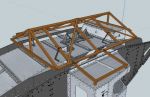 The mention of the long cross beams possibly being metal got me thinking, but for now I think wood is still correct. The main beams I made up of 2" square beams the cross beams 1/2" x 2". I tried 3" beams and it looked to bulky.