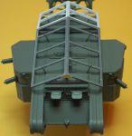 Having viewed an extended version of the video clip of the crew removing the tarp from the rear extension on their tank I am wondering about the attachment of that extension to the body of the tank. Certainly it is a robust construction, obviously capable of supporting 2 crew members, but it appears to rely on the connection with the main canopy at the front and a single, central support at the rear; unfortunately that cannot be made out. I must confess an inclination to provide twin support from the centre V cross members as per the main canopy; not least because 'mine' lines up with a hull top cross member (accident or careful measuring - I'll leave you to decide).