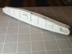 The model is coming along, albeit a tad slowly. The photos show the first build in progress. The pieces on the cutting board are for the rear superstructure. I have two transverse formers at roughly the third points, but nothing longitudinal yet. I hope to finish the superstructure shell tomorrow. So far all seems to be going pretty well. I have applied the hatches to the left cab, but not on the right one, and none of the other details.
