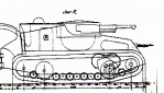 That leaves the mysterious 700 hp design. PM describes it, but it's not clear (at least, to me) where it came from. It differs from the 350p in that it has the power plant in the middle, but it has front- and rear-facing (amphisbaenic!) tanks, with what look like 75s mounted in turrets. It has double tracks, to reduce ground pressure.