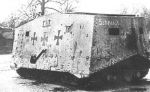 A German tank captured by Allied forces being towed at Fremicourt, France, by a British tank. Photograph taken 7 September 1918 by Henry Armytage Sanders.