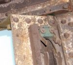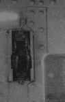 Unfortunately I can't help with a good clear shot of the mount, it always manages to be just out of focus or incomplete. The mount bolts to the inside of the tank and has a pivot point top & bottom to allow for some sweep of the gun.