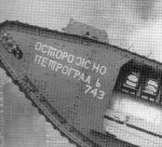 The "Petrograd" inscription appears to be located behind the sponsons on the tanks manufactured by Metropolitan (eg. 713) and in front of the sponsons in those built by Fosters (eg. 742, 743).
