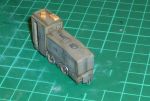 Well it's in the base colour now and had a gloss coat and decals applied ready for weathering before a final matt coat. I've also made a start on a brigadewagen so it's got something to tow around.Â