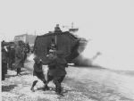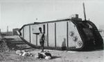 The others show a double-storey structure which could certainly be a funnel, with the steam exhausts coming up through it, although two pictures shows this item being pierced with a hole per side (too small for mgs on the sides, but big enough on the rear face? The very poor photo below seems to show some kind of detail on the rear face.). Despite being open in the pics, it also could have been closed at the top as evidenced by the rivet work. However, there must have been some kind of opening on the large rectangular part as the one pic shows a bloke looking closely at it.