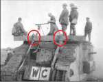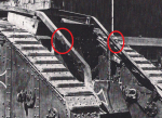 First what I call the lower stowage. It lays on two extra pieces of iron attached to the rails. Those beams were also attached by a chain that was wrapped around the beam and secured by a cable that was coming from inside the mark IV.