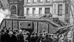 Another photo taken on the same parade I believe, of the US Army steam tank (Track Laying) called 'America' prototype. The most unusual feature of the tank design were the spikes added to the front of the tank. These were attached to the track adjustment mechanism. They helped clear mud off the tracks. A metal bar was fixed between each spike above the steel track so that it could dislodge large clumps of mud clinging to the track links.
