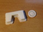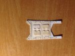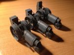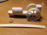 The base and the wheel are 3D prints. The parts in the second photo are the outer and inner side of the left hand side of the carriage. The third photo is the upper side of the carriage.