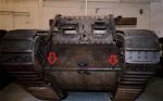 Does anyone have any "closeups" of the hooks with which the rope was attached at each corner of the bow of the tank? Thorst's description of them as hooks makes sense. Once the tension has been released by the handle and the fascine is jerked down and forward, the ropes would just fall away and not interfere with the operation of the tank's tracks. That seems like the "elegant solution" to the problem. I disagree that the windlass might be for travel only as the whole thing would need to remain under tension up to the moment of release. There would have had to have been enough tension to literally pull the fascine down and forward to ensure that it end up properly placed directly in front of the tank. In no way could it have been allowed to bounce "out of control" down the front of the tank lest it end up out of alignment and useless for its intended purpose.
