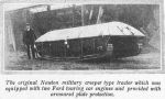 The Studebaker tank did look quite a bit like a miniature British heavy tank. Certainly, the cab was very reminiscent. But it looked as if it had been designed and built as a complete unit, not like a cover that could be bolted on. That description fits the vehicle at the top of this post, the "original Newton", supposedly with two Ford car engines. The cover seems to cover the top and extend down the sides, with what looks like a door. Judging from the man in the photo, it must have been only 4 or 5 foot high. Where did any driver or crew go?