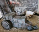 A pic of a fowler B5 Armored tractor I built about a year ago. It is a model from Jacek Bernas (J B Models) It is rated as a simple build but for someone just starting in card modeling it still had it's problems but I think the finished article is ok. There are apparently trailers to go with the model, does anyone know how to go about getting a template of them or a drawing? The scale is about 1/32, I used stick on rhinestones for the rivets and painted it with unthinned artists waterpaint English Grey F1416E.