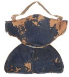 The Daigre armor pictured in Bashford Deane's reference appears to have a base that is more flat across the bottom but is otherwise the same. His photos and description read, "It weighs 21 pounds and encloses a nineteen-pound plate of chrome steel; this is .275 inch thick and is covered on either side with a thick layer (half an inch) of gelatinous material (woodite) which is continued over the top edge of the shield so as to furnish a marginal cushion which helps to stop lead splash or flying splinters. Over all is a sheath of blue tent-cloth which firmly adheres to the surface of the shield. For ease in handling, arm straps are provided and also loops by means of which shields can be supported from the neck and belt and carried as a breastplate." According to Dean, the French ordered approximately 65,000 of these.