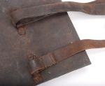 All four a connected in the center by strong brown leather hinges. An olive web and leather adjustable sling was attached to the top of the primary plate to support the unit around the neck and two iron flat hooks fit over the soldier’s equipment belt to proved further support.