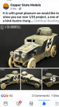 To coincide with the release of the new Copper State Models Romfell armored car, we are excited to be releasing the Romfell armored trailer. The kit comes with doors that can be connected to their own hinges, and a laydown workstation on the opposite side with a vice, plus a spare tire, and exact spoked tires with their armored covers. The Armored trailer will accentuate the elegantly shaped Romfell. Shipping will be in September.