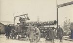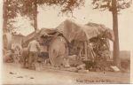 I have attached another picture showing the carriage train in partial disassembly, attaching (or detaching?) the radgürteln (the linked blocks on the wheels). I believe that the brace you enquire about was there to prevent the tarpaulin from getting caught in the radgürteln during transport. It is not visible at any other stage of use of the weapon.