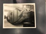 "The machine shown here has presented an enigma to everyone who has tried to reasearch it. It was wheeled, but was omitted from the previously published U.S. Military Wheeled Vehicles due to the fact that it was a tank (Was it? - Ed). Although it was built by the Holt Tractor Company in 1918, the extensive archives held today by Caterpillar do not include any other views, although these records do refer to it as the "150 Ton Field Monitor." It has been generally assumed that a rear view is seen here, and that the large steel driving wheels were at the front. However, Mr. Louis Neumiller, a former Chairman of the Board at Caterpillar, remembers the vehicle undergoing tests and says the small wheels were at the front, farm tractor style. Regardless of which way was forward, it only moved about 50 feet in testing before it got bogged down. Each of the 8 foot tall driving wheels ws individually powered by a 2 cylinder double acting Doble steam engine. Each engine had a Doble-type boiler, and a large Holt radiator was behind the vertical louvers, acting as a condensor for the system."