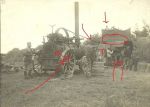 It appears to be a large wheeled engine of some sort. I have no images to provide, but I know how they work. It had a steam engine, which would turn the large wheel on top, which would turn and power whatever would be hooked up. I don't know why it would be used in the First World War, but perhaps it could be hooked up to an tractor for extra power. I do not know the specific model. I may be wrong on all of this though.