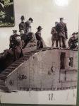 This is a photograph of the Mk IV (Female) "Britannia" British tank at Camp Dix. It was brought to Camp Dix in February, 1918 to familiarize American Soldiers with this new fighting machine, which most had never seen. The French, British, and Scottish soldiers, sitting on the rear deck of the tank, were assigned to Camp Dix to advise U.S. Soldiers of the role tanks and trench warfare were playing in France and Germany.
