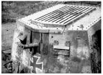 While trying to find it's identity I noticed something that I had missed about the A7V. The rivet pattern differs between batch one and two. I knew that the rivet spacing differed along the roof line in the front but it never occurred to me that it would be different altogether.