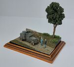 The landscaping is formed from PU insulation foam skimmed with plaster, the small section of wall was cut down from a Preiser set, the lefthand figure is a modified Orion German tank crewman and the righthand one is from Black Army Modells, without a doubt he's one of the best 1/72 sculpts I've seen.